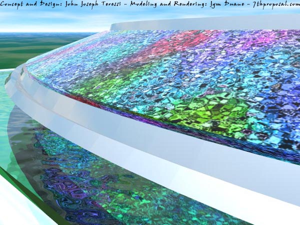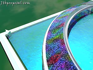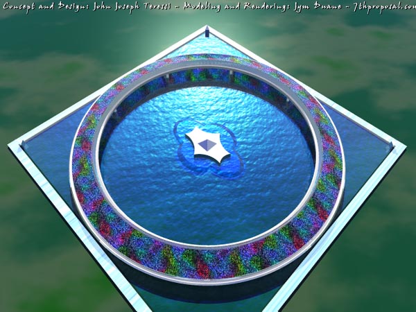 Twelve-foot tall pillars mark the corners of the lakes. Each pillar